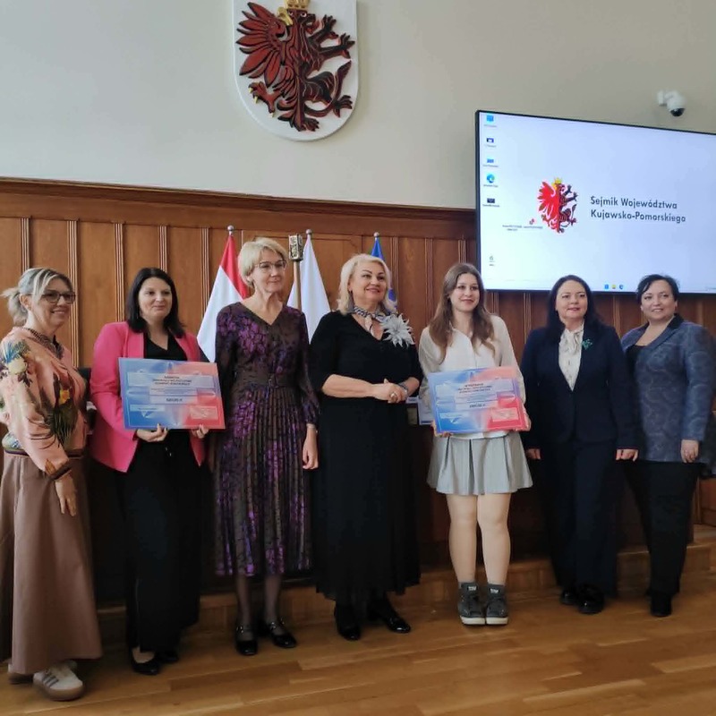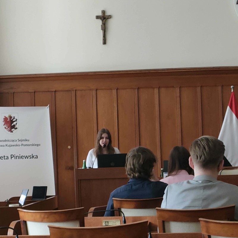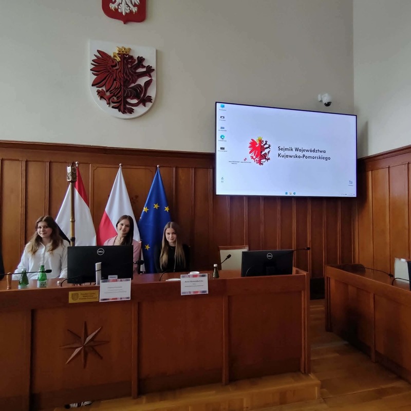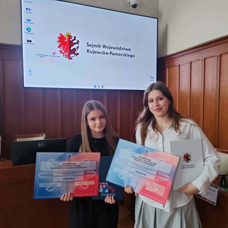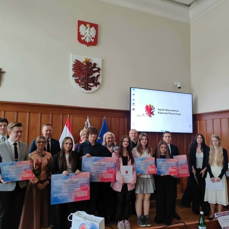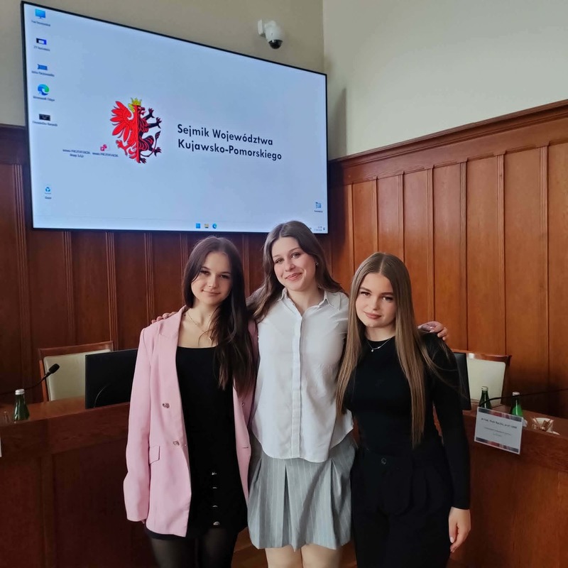 27.04.2026 roku w urzędzie marszałkowskim w Toruniu odbył się po raz XXII Regionalny Konkurs Wiedzy o Samorządzie Terytorialnym. Naszą szkołę reprezentowały przedstawicielki z klasy 3a w składzie: Wiktoria Jurczenia, Aleksandra Karczewska oraz Nadia Szynal. Uczennice, aby dostać się do finału musiały przygotować pracę pisemną wraz z prezentacją multimedialną na jeden z zaproponowanych tematów. Z nadesłanych na konkurs prac Wojewódzki Komitet Organizacyjny wyłonił 10 finalistów, którzy osobiście przedstawiali swoje prezentacje członkom komitetu i odpowiadali na ich pytania. Wiktoria Jurczenia otrzymała wyróżnienie i tytuł laureata oraz nagrodę finansową. Z kolei Aleksandra Karczewska i Nadia Szynal otrzymały tytuł finalisty. Dodatkowo członkowie Młodzieżowego Sejmiku Województwa Kujawsko-Pomorskiego wyróżnili pracę Aleksandry Karczewskiej za sposób widzenia rzeczywistości i rozumienia problematyki w charakterystyczny sposób dla młodego pokolenia. Uczennica również otrzymała nagrodę finansową.