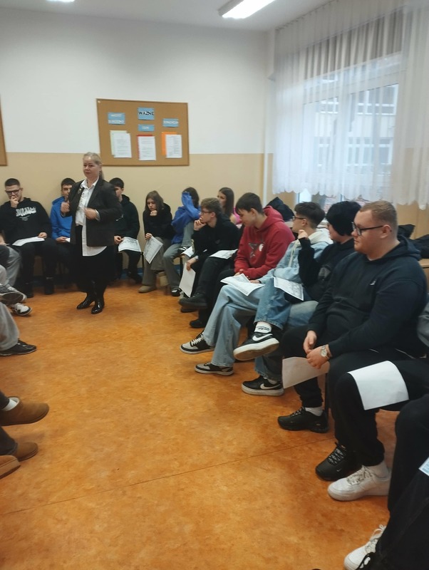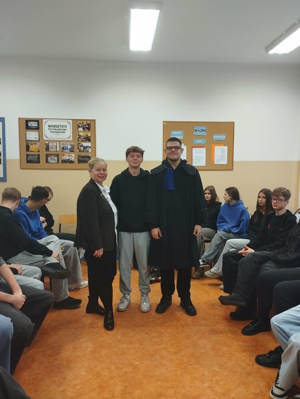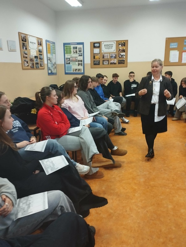 W naszej szkole odbyło się wyjątkowe spotkanie z panią mecenas, radcą prawnym, Katarzyną Skarżyńską która poprowadziła warsztaty dotyczące mediacji. Uczniowie klasy 3e mieli okazję dowiedzieć się, czym jest mediacja, jakie ma znaczenie w rozwiązywaniu konfliktów oraz jakie korzyści przynosi stronom sporu. Pani mecenas w ciekawy i przystępny sposób przedstawiła zasady prowadzenia mediacji, a także zaprosiła uczestników do praktycznych ćwiczeń, które pozwoliły lepiej zrozumieć rolę mediatora. Spotkanie było inspirującą lekcją dialogu i porozumienia, pokazującą, że rozmowa i kompromis są kluczem do pokojowego rozwiązywania sporów.
